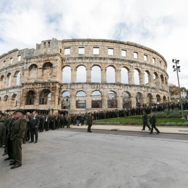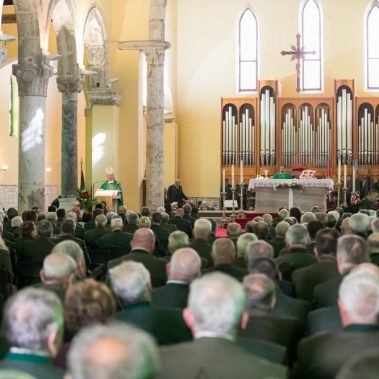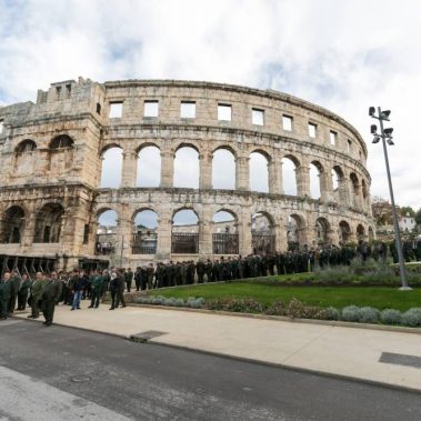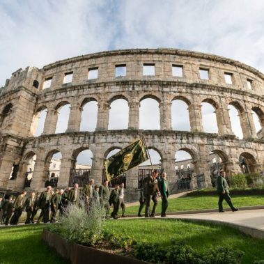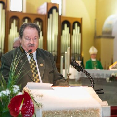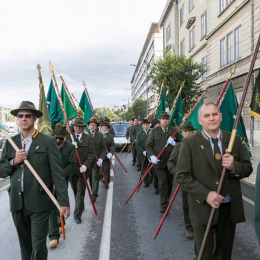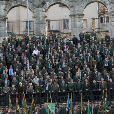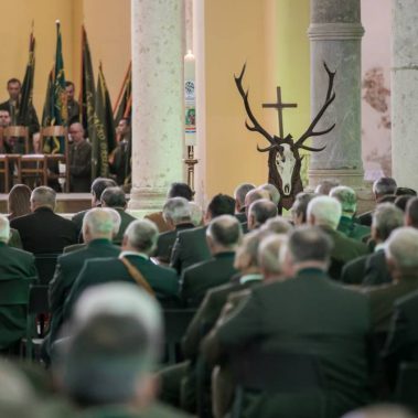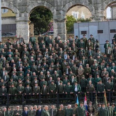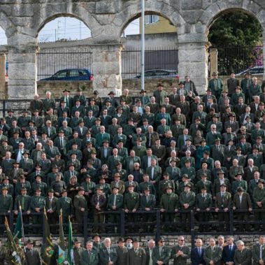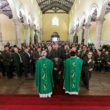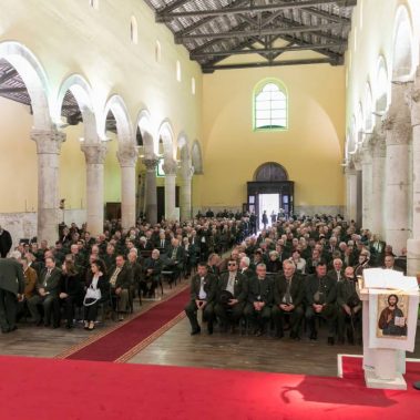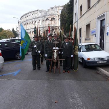 Nakon fotografiranja i izlaska iz Arene lovci su se u svečanom mimohodu sa svojim zastavama na čelu, uputili do Katedrale Uznesenja Blažene Djevice Marije gdje se održala sveta misa koju je predvodio, umirovljeni porečki i pulski biskup Ivan Milovan uz koncelebraciju katedralnog župnika Rikarda Lekaja koji je na početku okupljenima uputio prigodne riječi pozdrava i dobrodošlice.